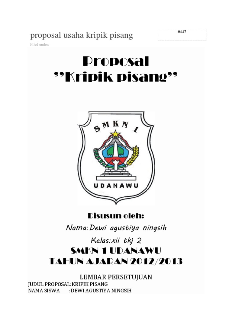 Indah sefi oktama rahmi 3314.113 ( lokal s1.ps.c ) jurusan s1 perbankan syariah fakultas ekonomi dan. Contoh proposal kewirausahaan kripik singkong. Unknown 30 june 2018 at 23:38. Pisang 50 kg x rp. Proposal kripik pisang disusun sebagai penelitian dalam kewirausahaan pada kripik pisang memenuhi tugas dari mata kuliah praktek kewirausahaan jurusan s1 perbankan syariah fakultas ekonomi dan bisnis islam iain bukittinggi disusun oleh :
